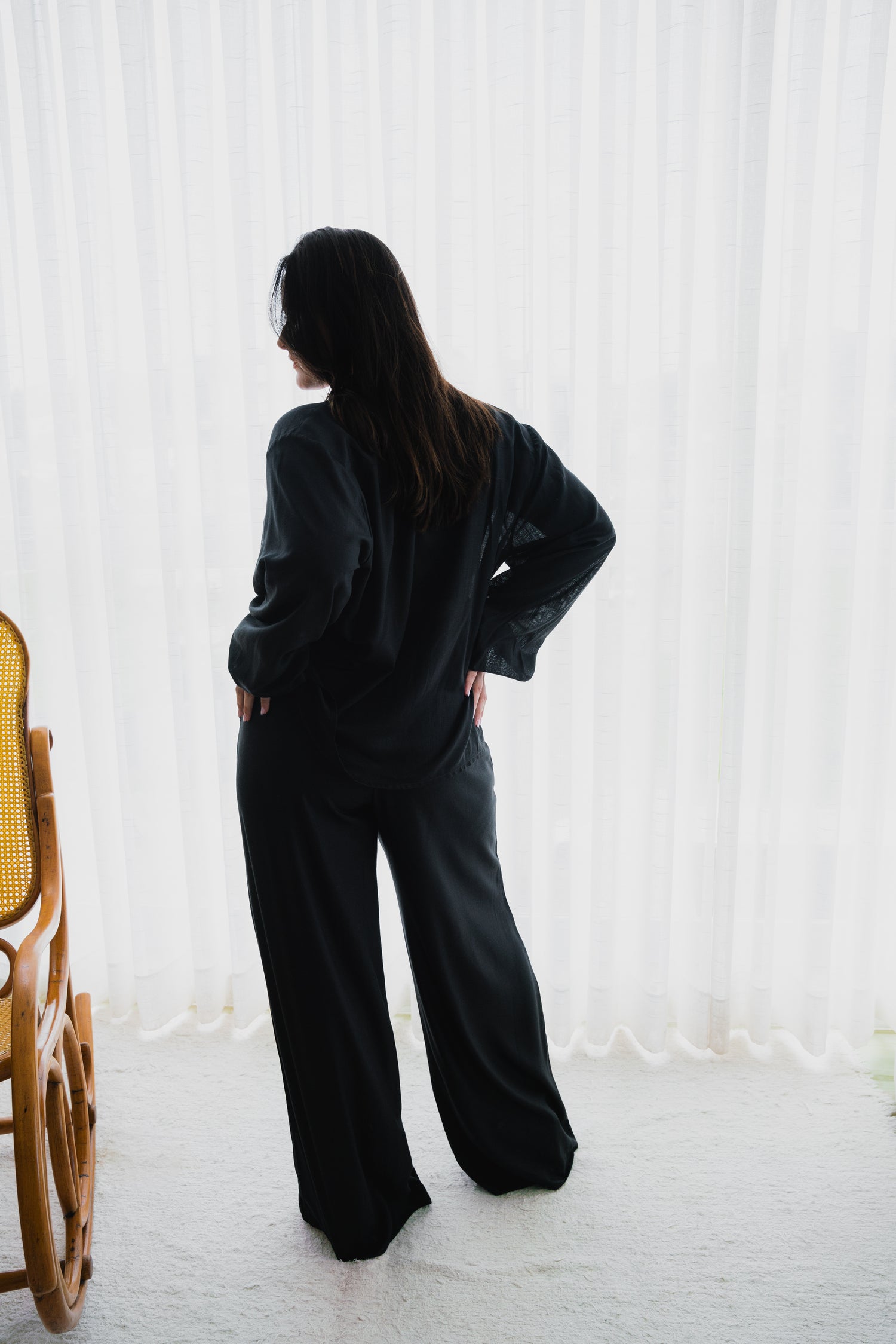 Confeccionada em viscose sarjada, a Pantalona Bolso é uma peça coringa e pode ser usada em várias ocasiões. Com modelagem reta e alongada, possui cós anatômico na frente e elástico largo nas costas. Disponível nos tamanhos PP, P, M, G e GG.