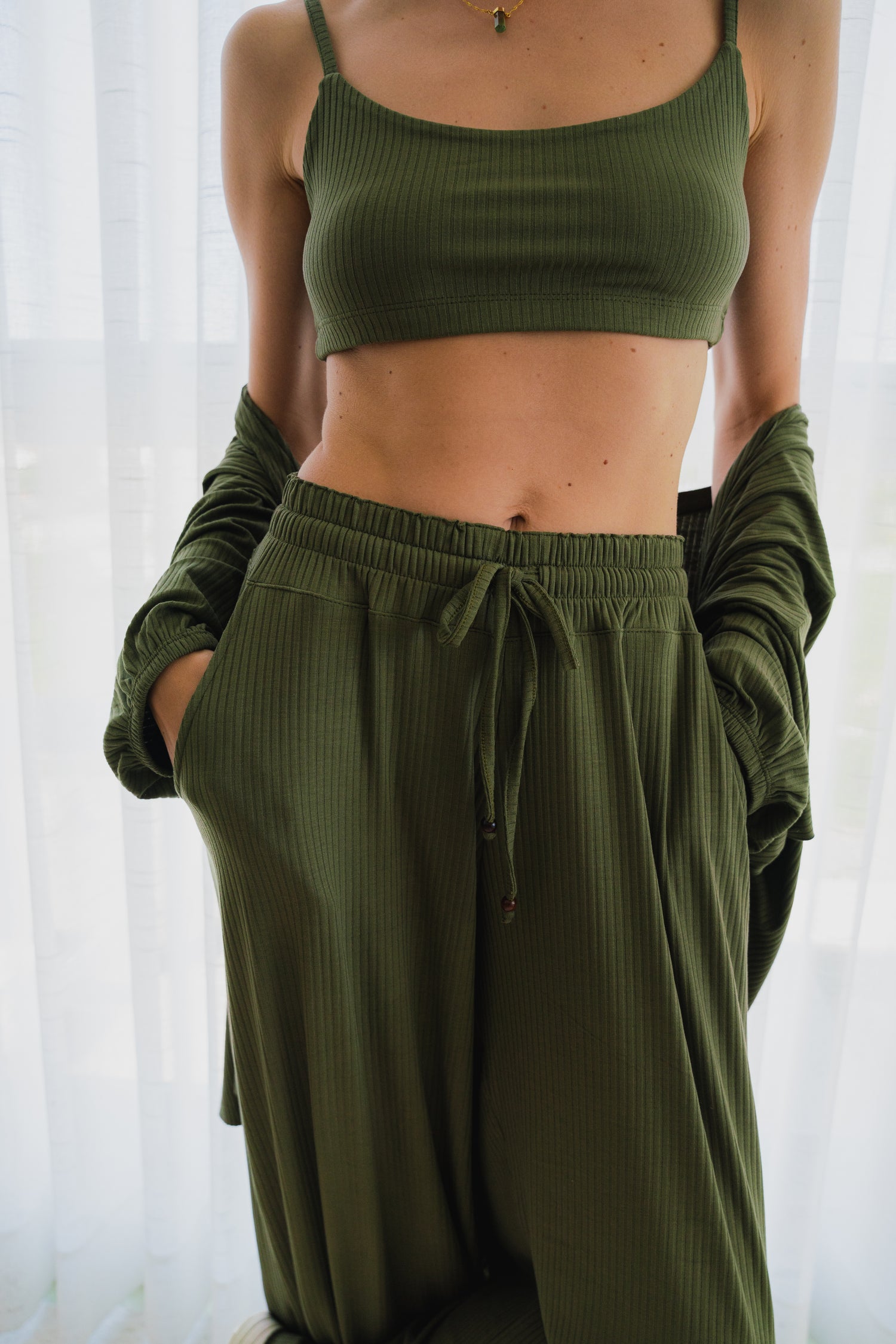 Esse modelo é produzido com viscose sustentável, proveniente de fontes renováveis, juntamente com o fio Lycra®, que acompanha os movimentos do seu corpo. Pantalona Laço com bolsos, cós com elástico e cordão ajustável. Para um visual estiloso, aposte no combo monocromático. Pode fazer conjunto com as peças da mesma cor em canelado ou em viscose.