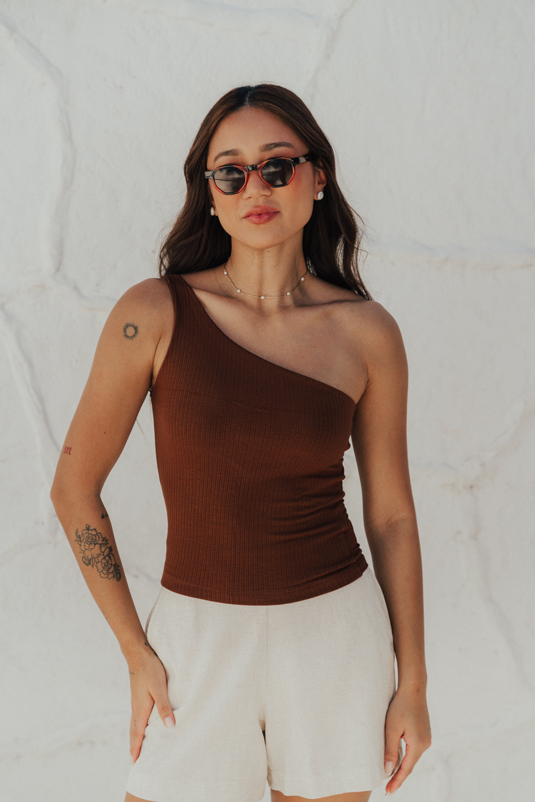 Esse modelo é produzido com viscose sustentável, proveniente de fontes renováveis, juntamente com o fio Lycra®, que acompanha os movimentos do seu corpo. Regata com alça unilateral, com camada dupla na frente. Para um visual estiloso, aposte no combo monocromático. Pode fazer conjunto com as peças da mesma cor em canelado ou em viscose.