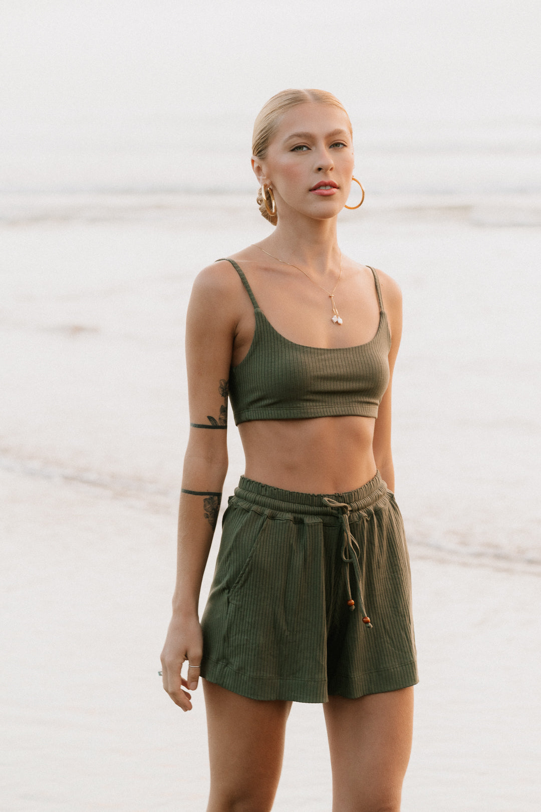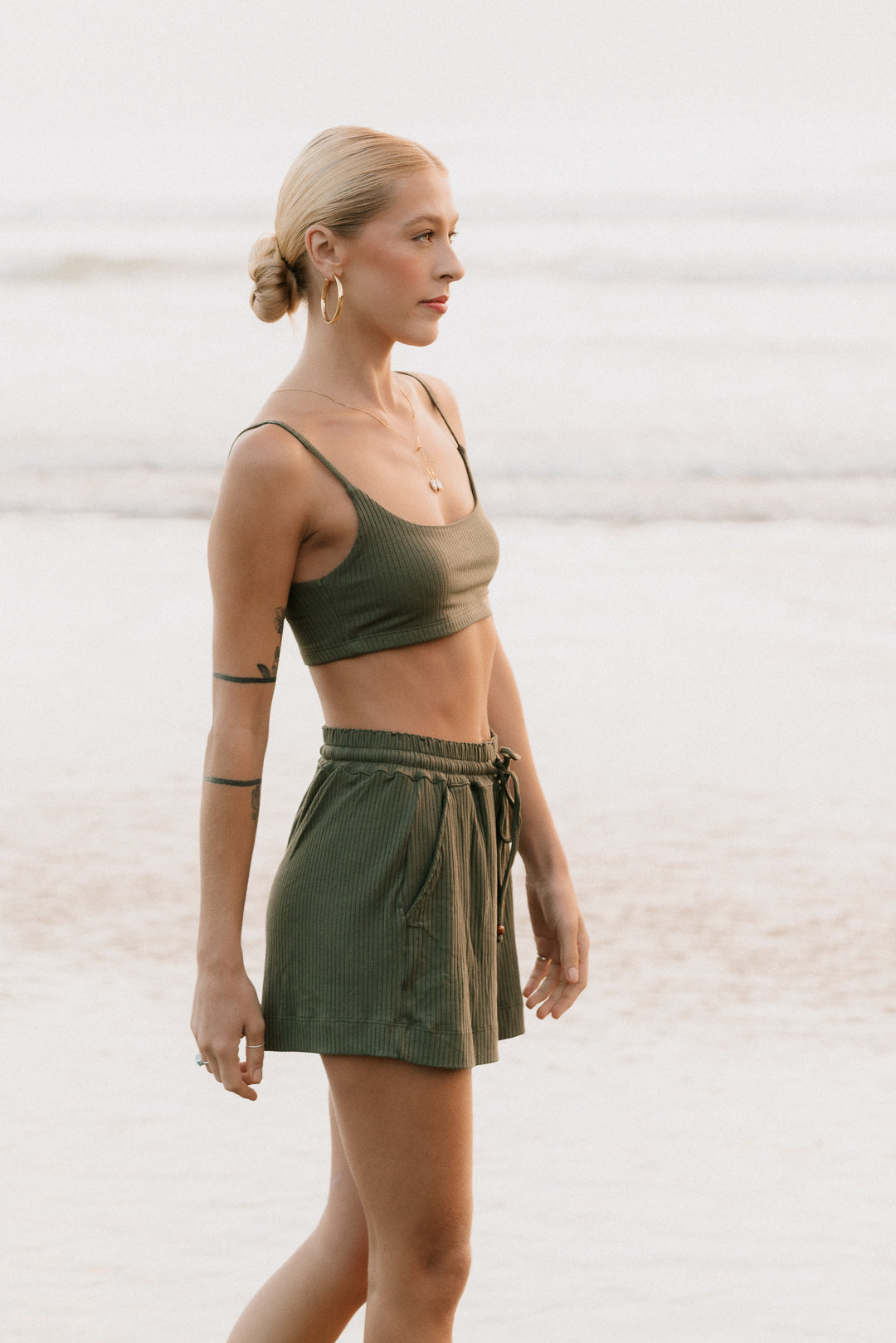 Esse modelo é produzido com viscose sustentável, proveniente de fontes renováveis, juntamente com o fio Lycra®, que acompanha os movimentos do seu corpo. Shorts Laço com bolsos, cós com elástico e cordão ajustável. Para um look monocromático, pode fazer conjunto com as peças da mesma cor em canelado ou em viscose.